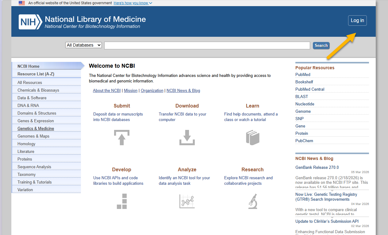- Navigate to NCBI (https://www.ncbi.nlm.nih.gov/).