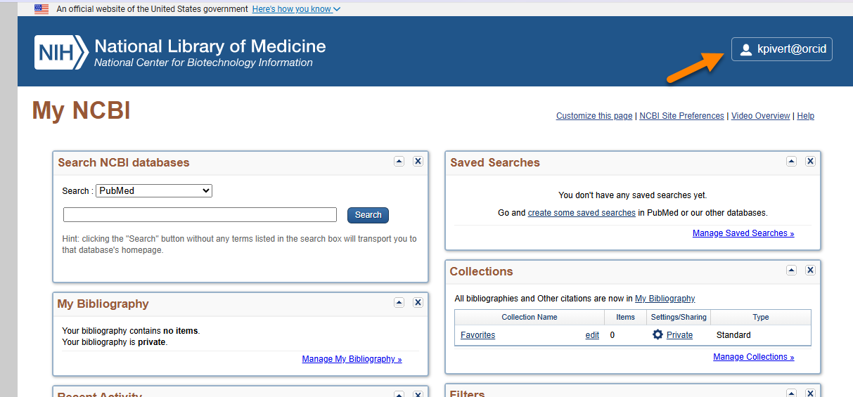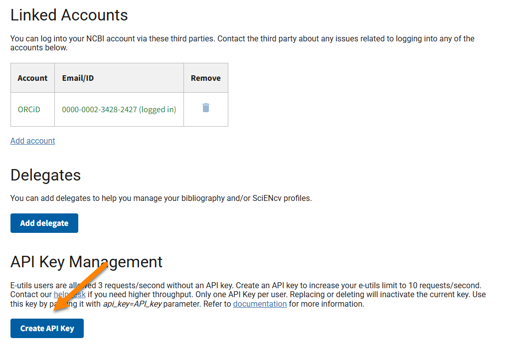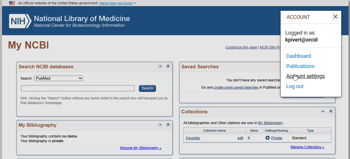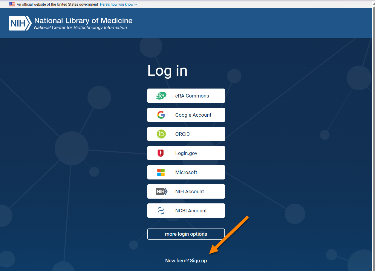 - If you don’t have an NCBI account, you will be prompted to create one. Options include Google, Microsoft, ORCiD, or through your institutional nexus.